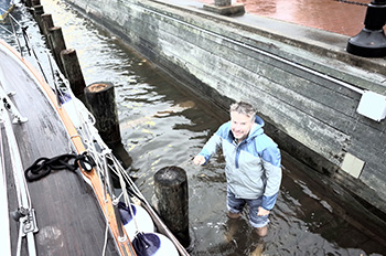 We ran into our friend Marty again and he rafted up with us for the night in a pretty spot called Campbell Creek. The next morning we left for Oriental NC which was not to impressive, perhaps being out of season it was just quite but we decided to vacate early the next morning for Beaufort NC where we would spend several days. We have stayed in Beaufort before so we know the town a little, good restaurants and stores for provisioning. We ran into Marty again here as he stopped to make some repairs to his leaky vessel. Beaufort is the third oldest town in NC and has a rich history. In the 1600’s pirates used to hang lanterns around horses necks to lure ships from the sea onto the banks that flank Cape Lookout where the entrance to Beaufort is. There is one left over pirate ship remaining in the harbor and still has a threatening look. There is a part of Beaufort on the waterfront that has been preserved as a historical society with a small museum and folks who dress up and do tours of the area.