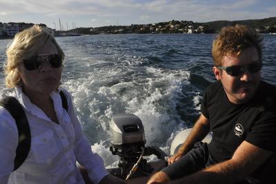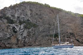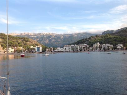 We left Andraitx heading up the North West side of the island headed for Port Soller. The landscape was amazing, sheer cliffs straight into the sea with huge mountains behind. We had numerous catabolic gusts hit us coming down the mountain slopes. The wind would change direction and go from 5 knots to 30 in an instant, then die suddenly. We were able to cruise very close to the coast as the water is all deep. We have arrived Port Soller which is the only safe harbor on this side of the island. From here we will go on several hikes and get some good land exercise. We have only just arrived but the anchorage is spectacular. We are surrounded by high mountains and a small town on the harbor where there is an old wooden tram still running between the port and the little mountain town of Soller. We enjoyed dinner with a lovely Belgium couple on Cadences sister yacht, another HR43 of the same year. We will wait here for a few days until our my sister Joan arrives. Very much looking forward to having my sis aboard.